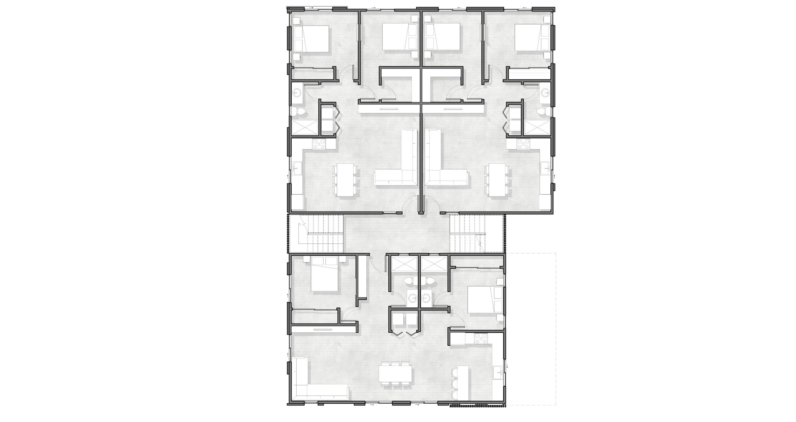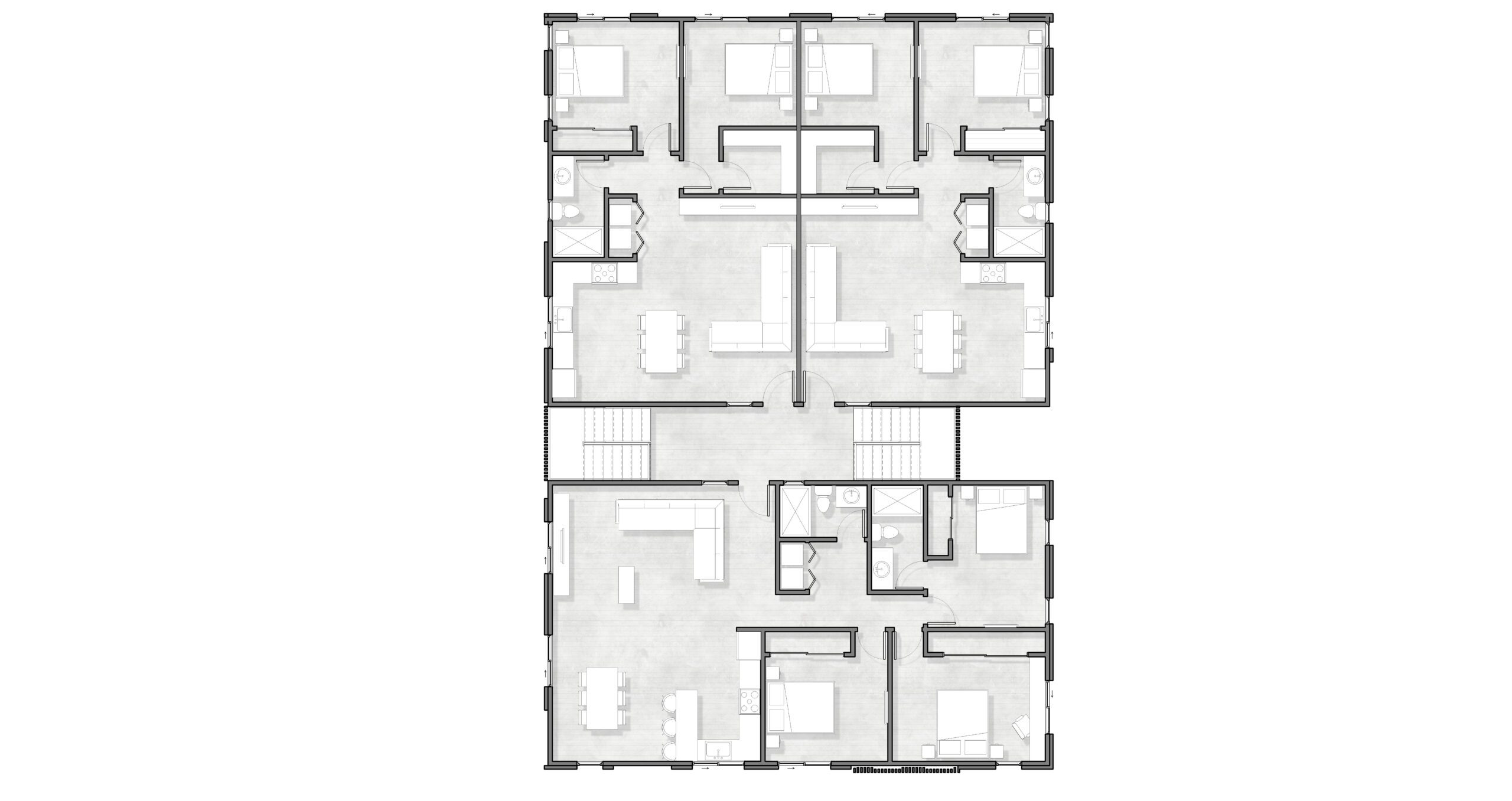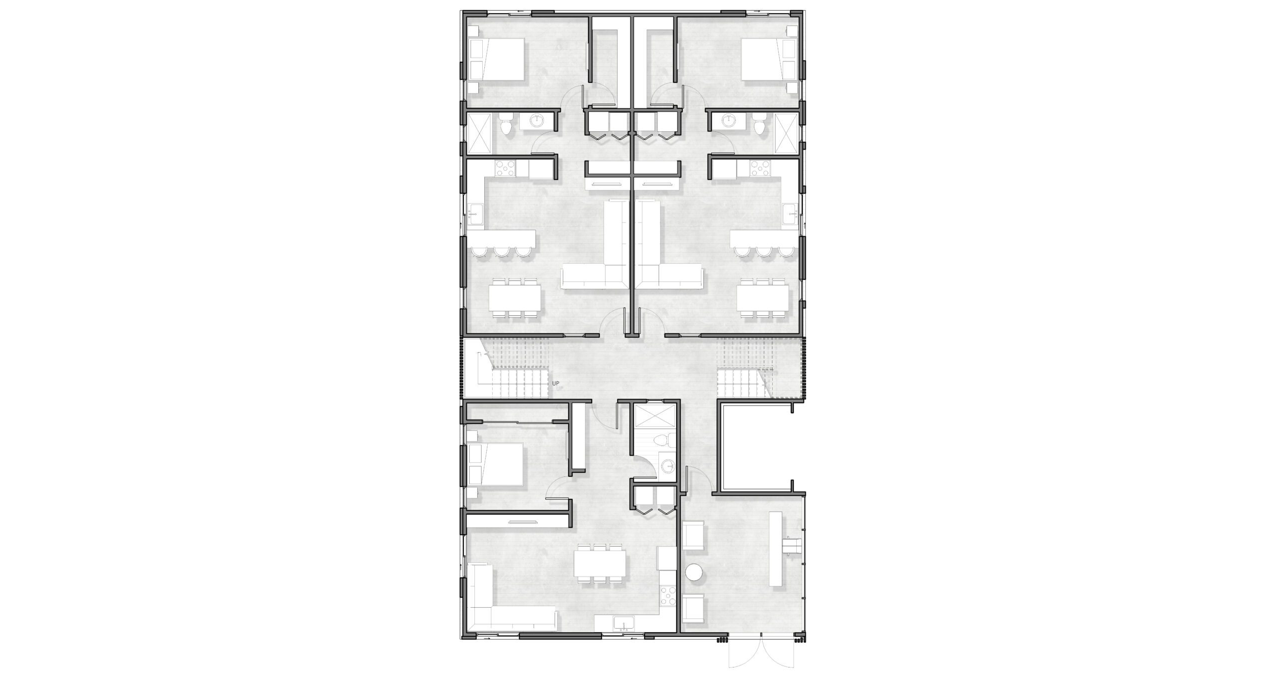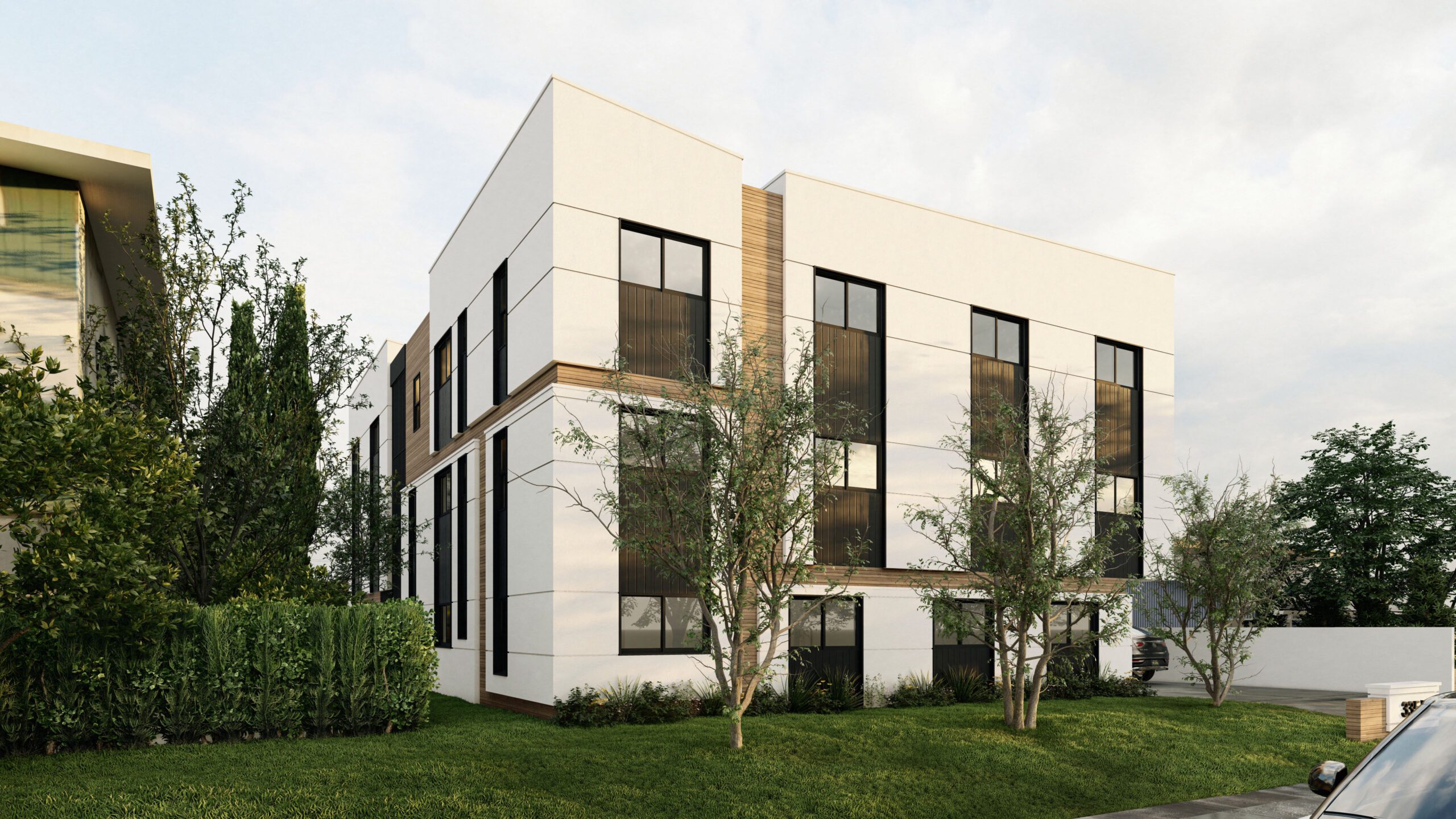 Hillcrest represents a refined approach to multifamily housing through its clean geometry, balanced use of materials, and focus on modern comfort. The design embraces minimalism and natural textures, combining white façades with vertical wood accents and dark window frames to achieve a timeless and elegant aesthetic. Located within a residential context, the building introduces density without compromising the warmth and harmony of its surroundings.