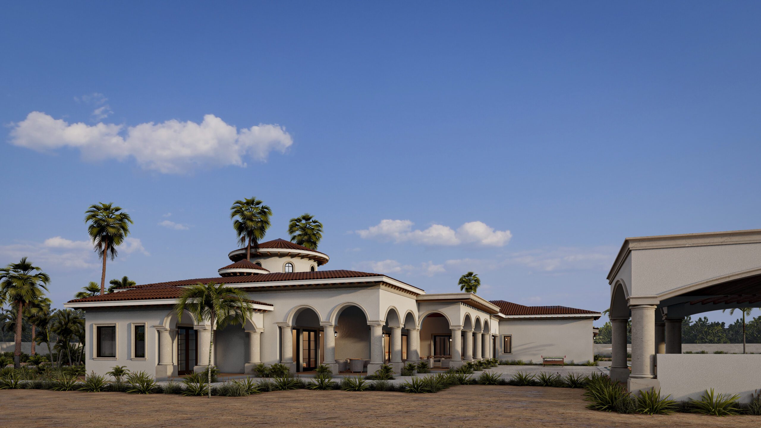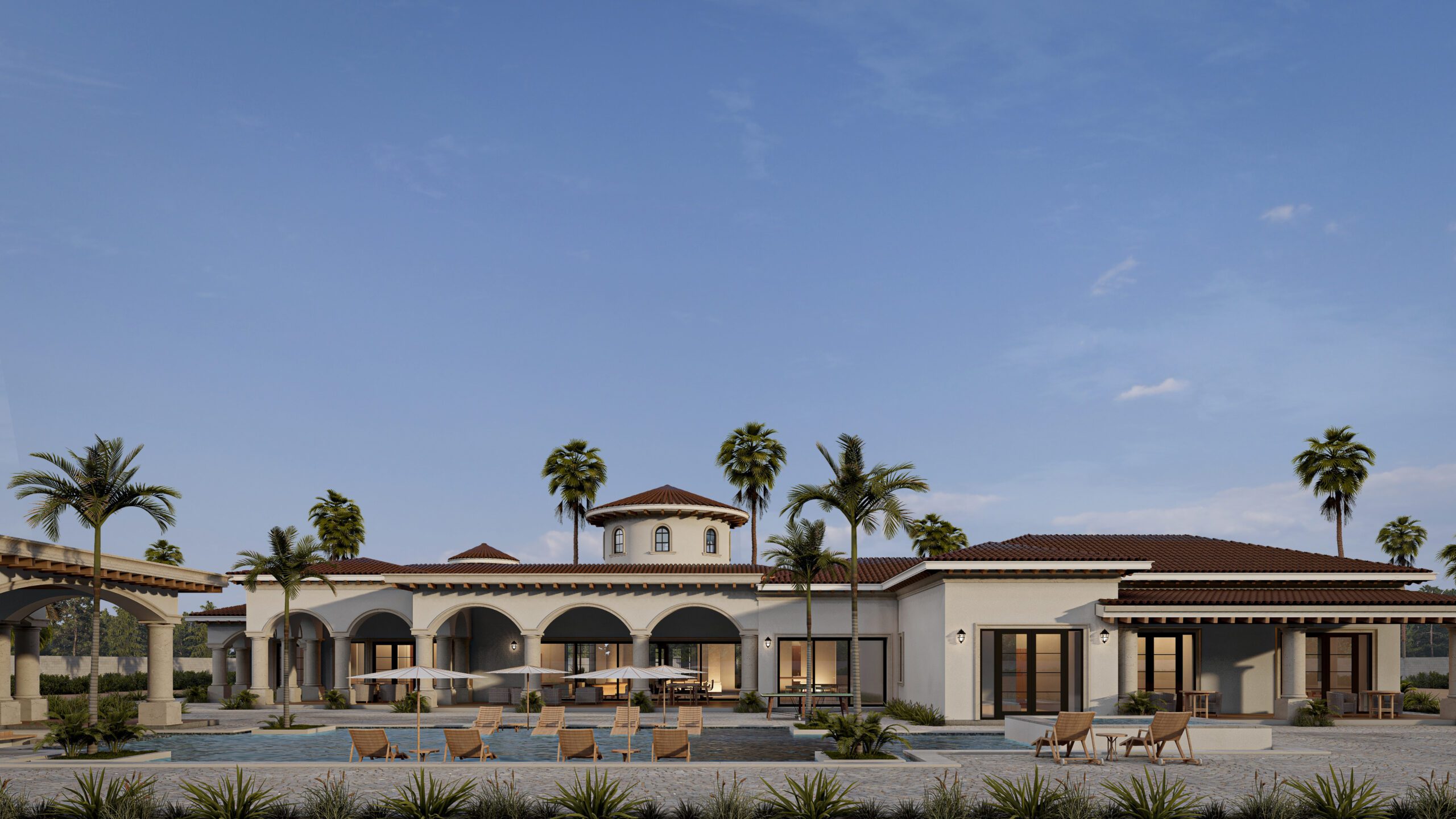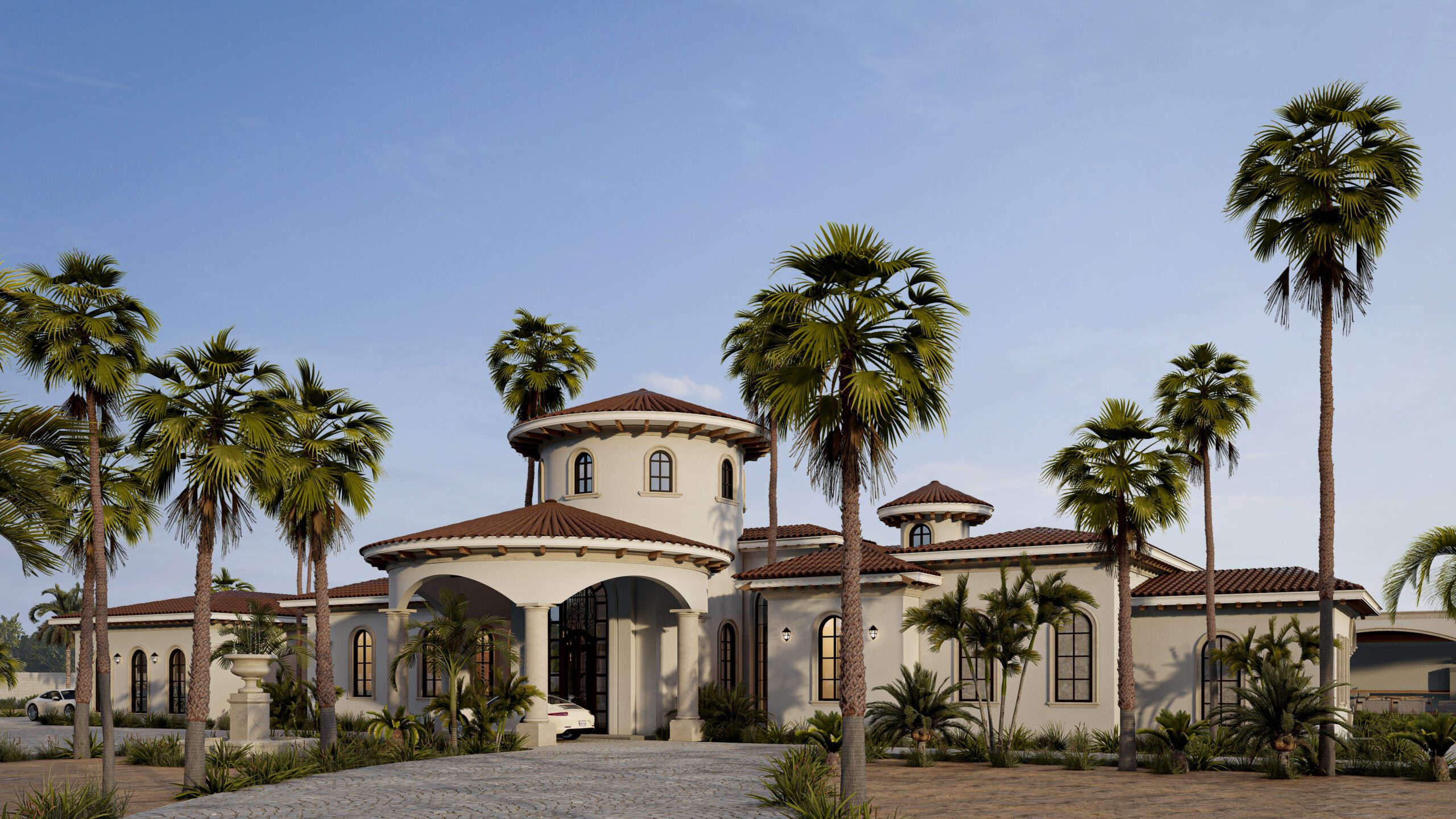 Jackson evokes the timeless elegance of Mediterranean architecture, merging classical symmetry with modern refinement. The residence features soft stucco walls, clay-tiled roofs, and arched openings that frame a harmonious rhythm across the façade. A central rotunda serves as both architectural and spatial anchor, guiding the flow between expansive interior spaces and lush exterior gardens. Designed for both luxury and serenity, Jackson embodies sophistication rooted in tradition.
