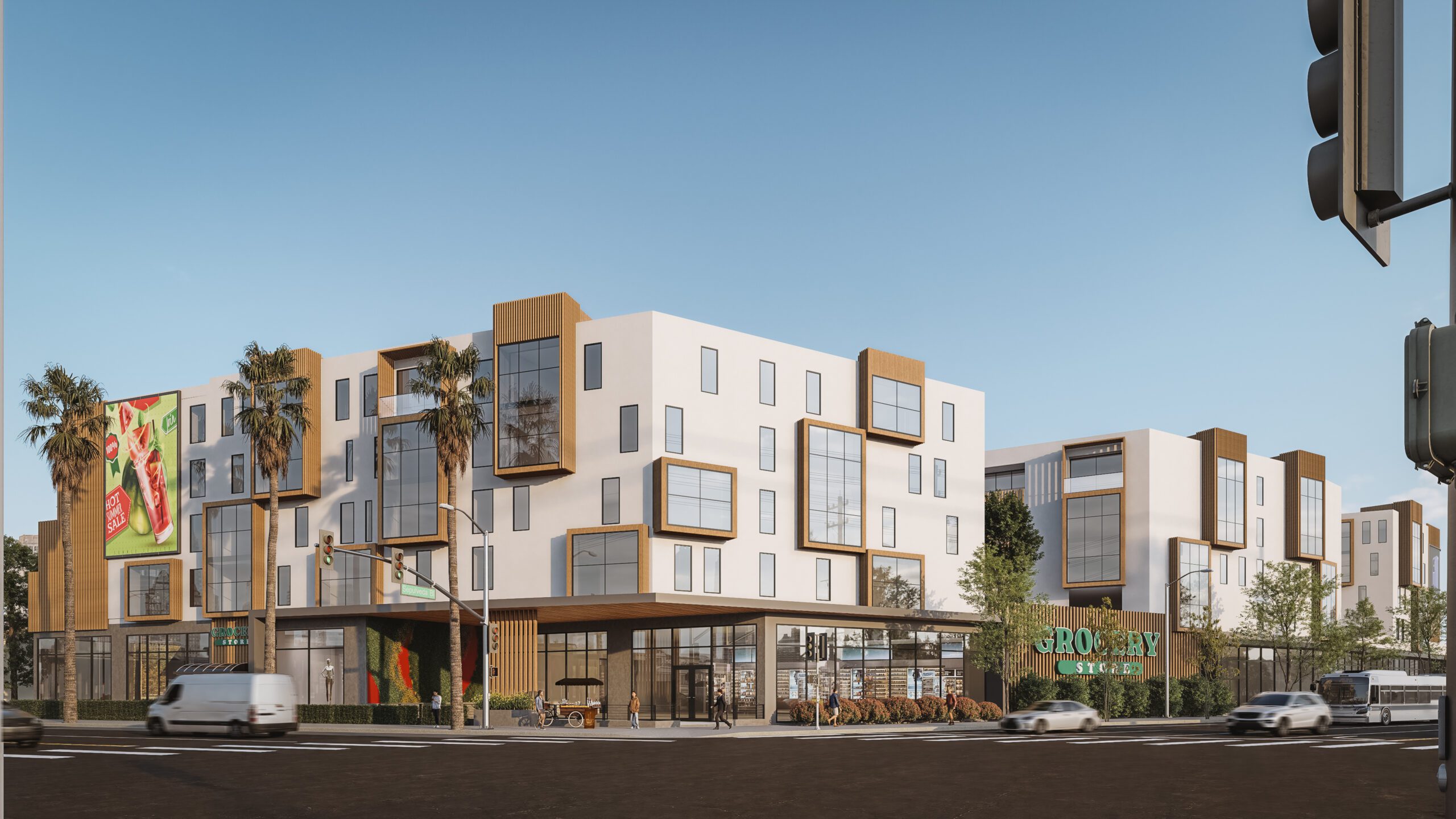 Sepulveda is a mixed-use development that redefines urban living through a balanced integration of architecture, nature, and functionality. The project combines residential, commercial, and recreational spaces within a single, harmonious structure. Its design embraces clean geometry, warm materials, and generous natural light to create a comfortable and sustainable environment. Vertical gardens and wooden façades enhance the building’s connection to nature, while open terraces and large windows foster interaction between interior and exterior spaces.